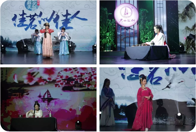 20強淘汰賽第一組選手包括侯蘇娜、郭靜宜,田喻、戴雅宜四名美女,她們扮演貂蟬、西施、王昭君、楊玉環四位大家熟知的古典美女,通過茶藝、才藝、國學知識演繹,現場仿佛回到了古代四大美女的年代,完美的詮釋了什么叫“從來佳茗似佳人”。