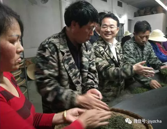 4月6日晚10:00,市城投集團黨委書記、董事長游志堅來到君山島君山茶廠,看望和慰問深夜仍堅守崗位正在從事茶葉生產的君山茶廠員工。來到揉捻車間,茶廠負責人向游志堅一行詳細介紹了茶葉生產、采摘、加工的全過程。當聽到作為中國十大名茶之一的君山銀針獨特的燜黃工藝時,游志堅饒有興趣地向制茶師傅了解加工的環節和制作的細節,并對這一湖南省非物質文化遺產大加贊賞。在烘焙車間,游志堅興致勃勃地與技術人員一起在手工炒鍋中對毛尖茶葉進行翻炒、搓揉,直至顯露白毫。