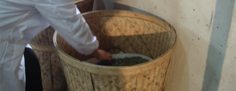 方法與初包相同。歷時20小時左右。待茶芽色澤金黃,香氣濃郁即為適度。