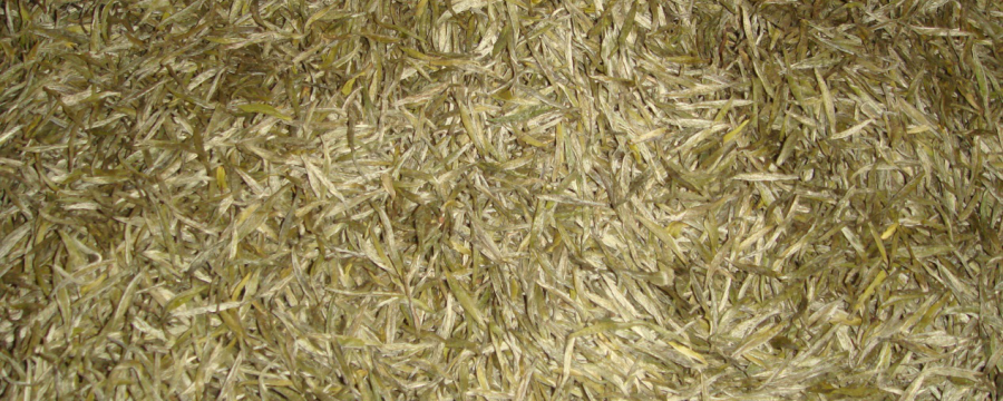 將石膏燒熱搗碎,鋪于箱底,上墊兩層牛皮紙,將茶葉用牛皮紙分裝成小包,放在皮紙上面,封好箱蓋。只要注意適時更換石膏,銀針品質經久不變。